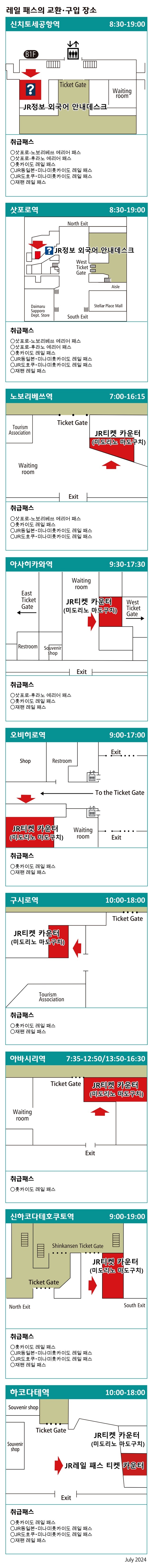 데이오프에서 구입한 삿포로-노보리베츠 에리어 패스는 교환권으로 현지에서 실제 티켓으로 한 번 교환해야 해요. 교환처는 삿포로역 JR 외국어 안내데스크와 신치토세공항역 JR 외국어 안내데스크가 메인인데 여행자의 75% 이상은 신치토세공항역 JR 외국어 안내데스크에서 교환해요. 이곳에는 상주는 아니지만 한국어와 영어, 중국어가 가능한 직원이 있으며, 홋카이도 레일 패스를 비롯한 다양한 패스권을 교환해주는 역할을 하고 있어요.