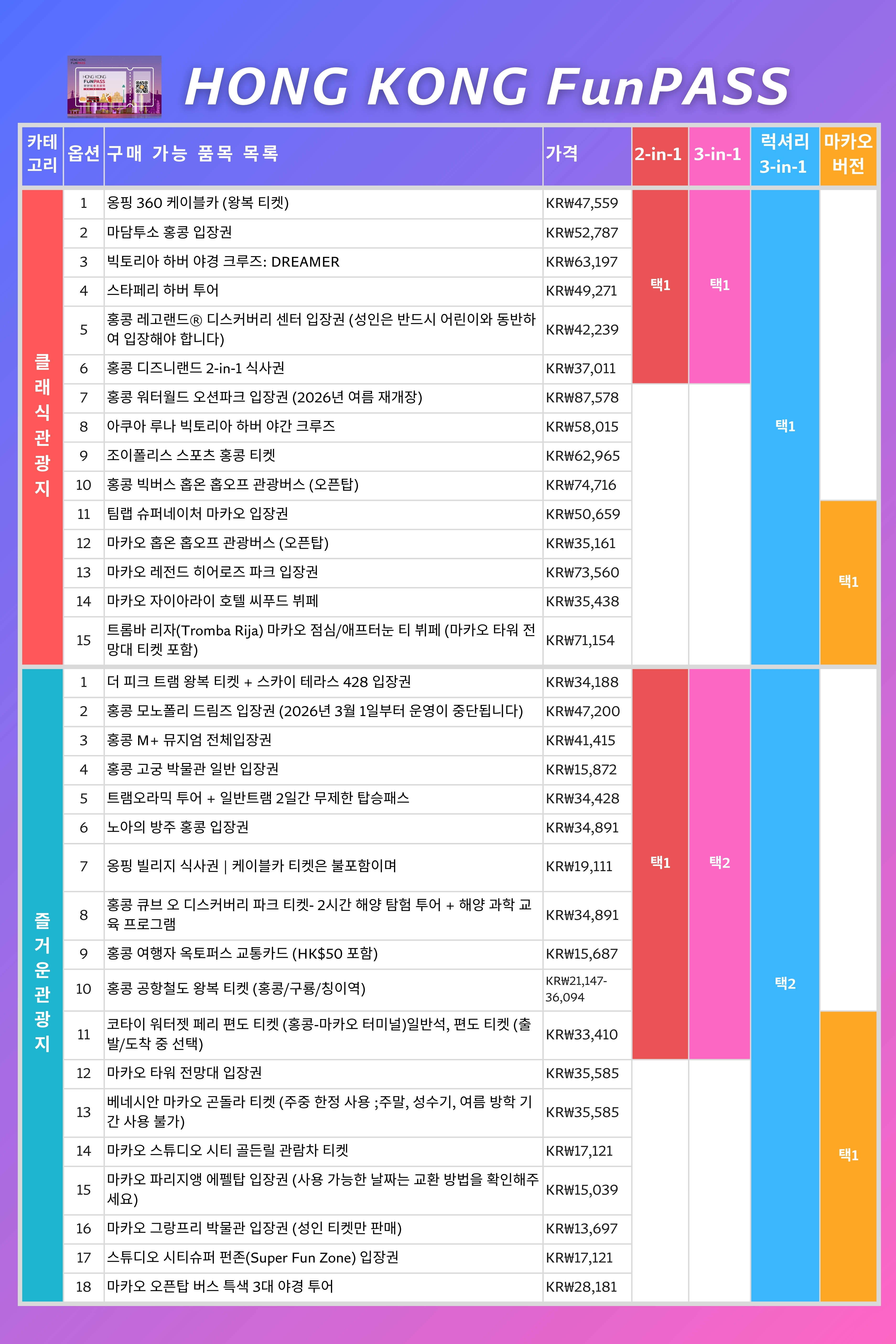 홍콩 & 마카오 FunPass 3-in-1 (럭셔리)