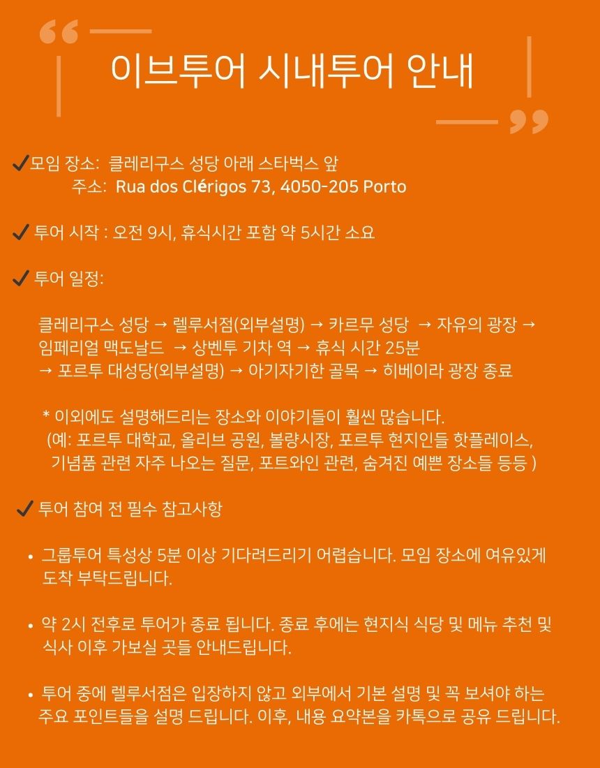 [독점할인] 포르투 오전 시내 정복 투어 with 이브 가이드