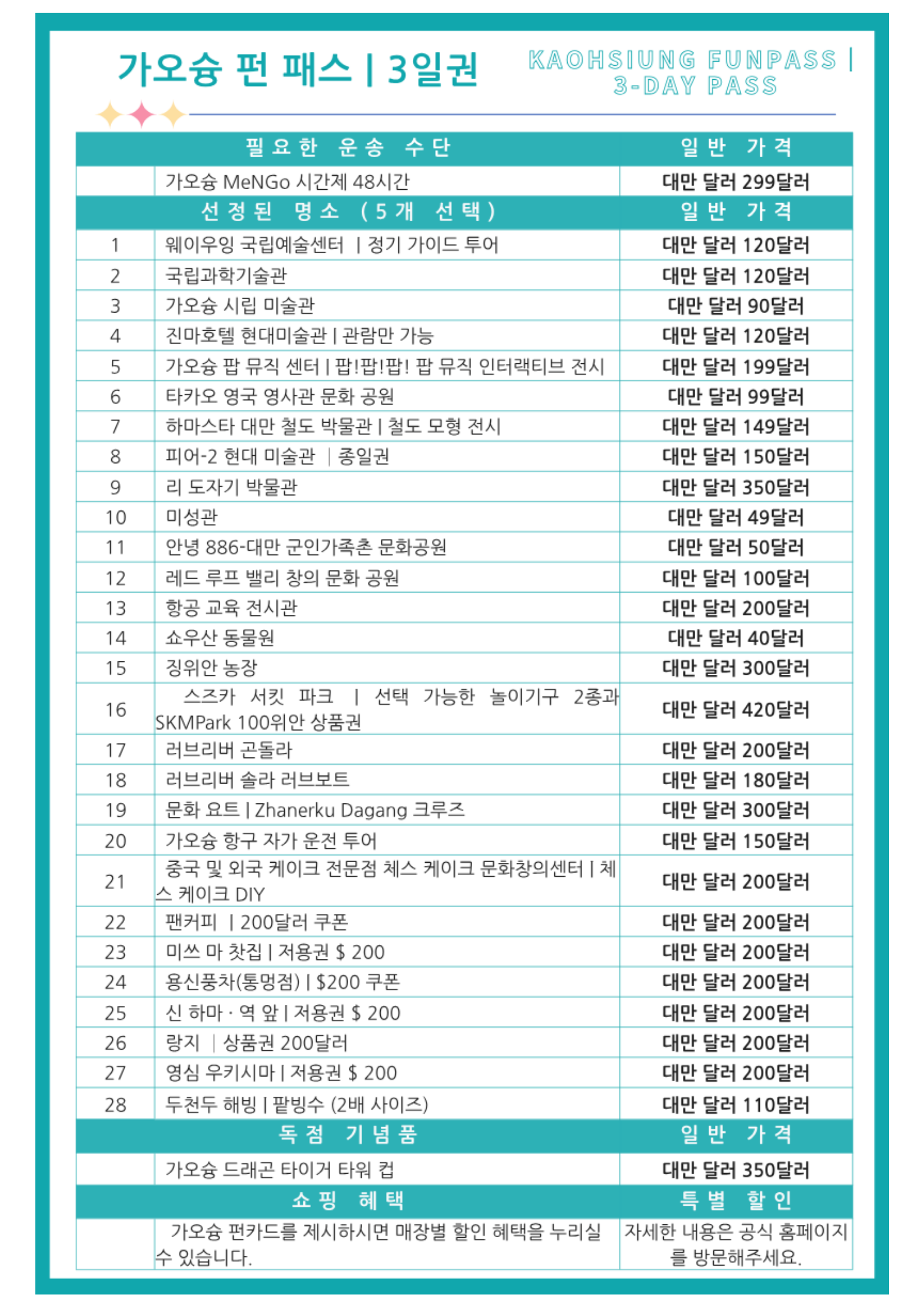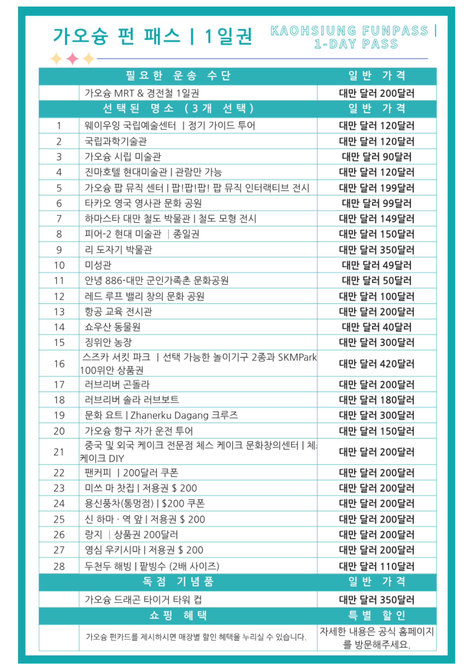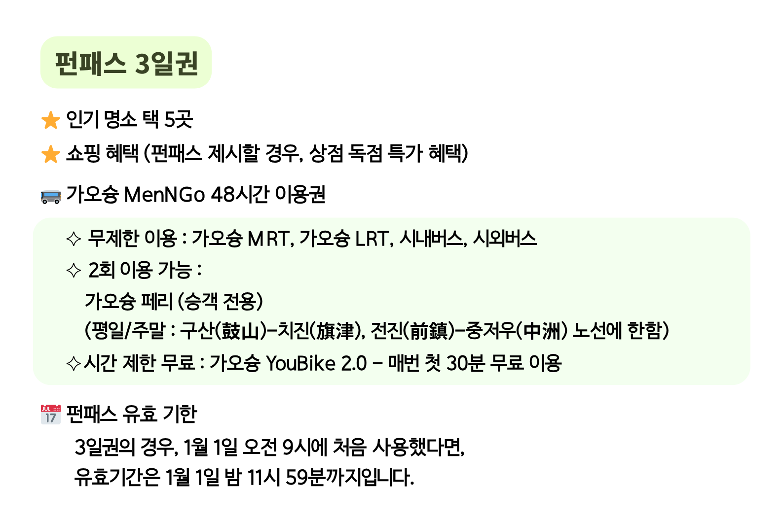 가오슝 펀패스 (1일/3일권)