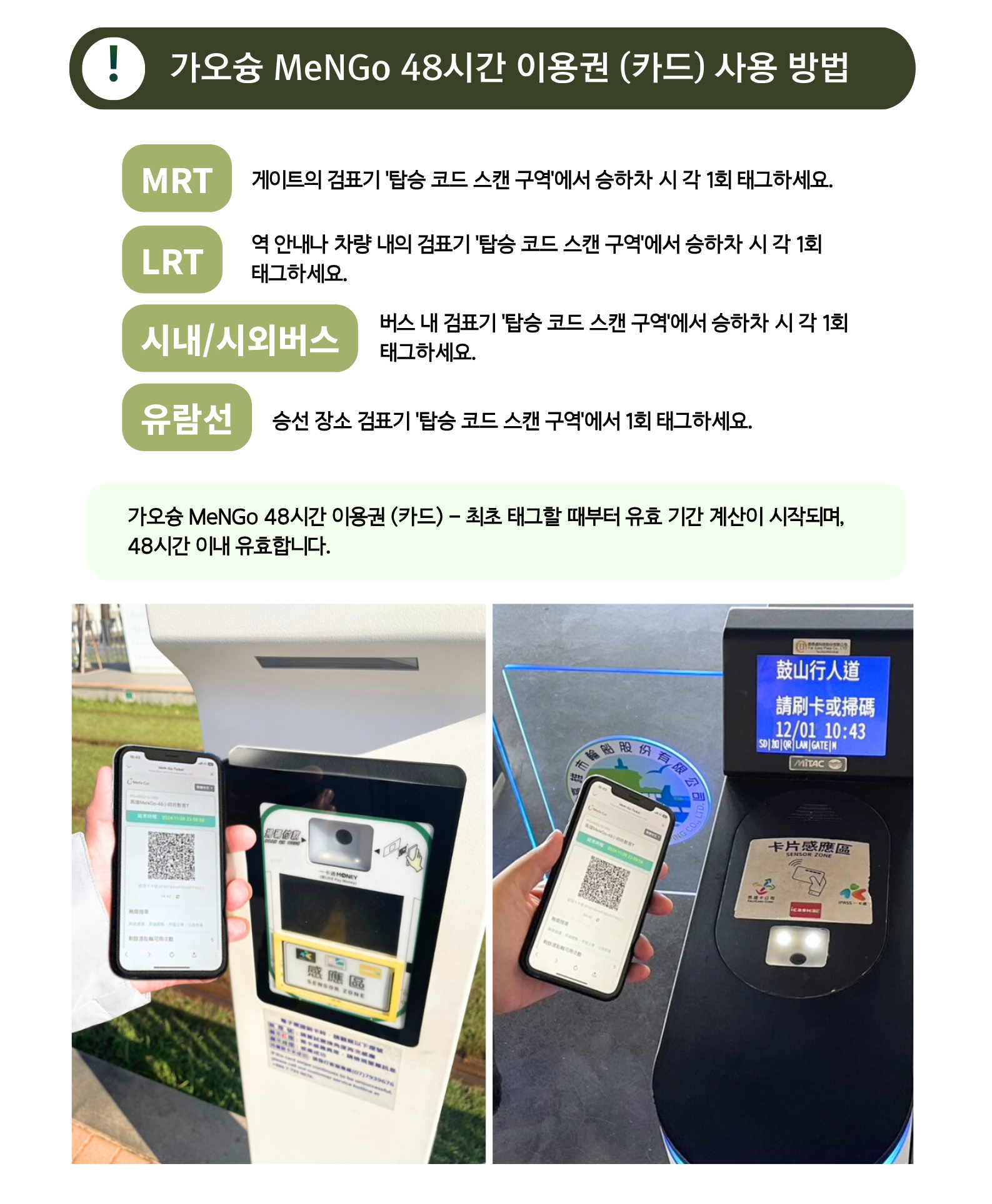 가오슝 MeNGo 48시간 이용권 사용 방법