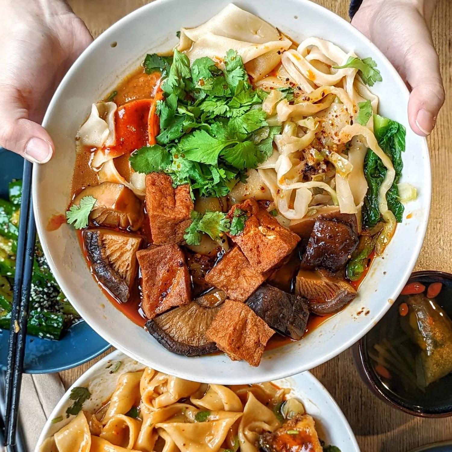 Wen Cheng베를린의 핫한 누들 전문점 중 하나로, 늘 줄이 길게 늘어선 맛집이에요. 찰진 식감의 넓적한 수타면에 홈메이드 스튜, 쓰촨페퍼와 향신료를 더해 감칠맛 폭발하는 비앙비앙 누들이 시그니처. 두부와 표고버섯 토핑이나 가지와 콩고기 토핑을 선택하면 비건 메뉴 완성!