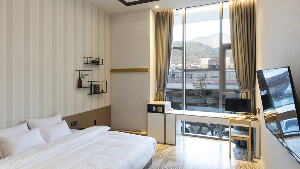 프런트 데스크를 24시간 운영하고 객실 중 넷플릭스 시청이 가능한 객실에 머물며 쉬어가도 좋습니다. 넓은 창이 매력적이며 가성비 좋은 가격에 머물기 좋아 1인, 2인 여행에 추천하는 진해 숙소입니다.