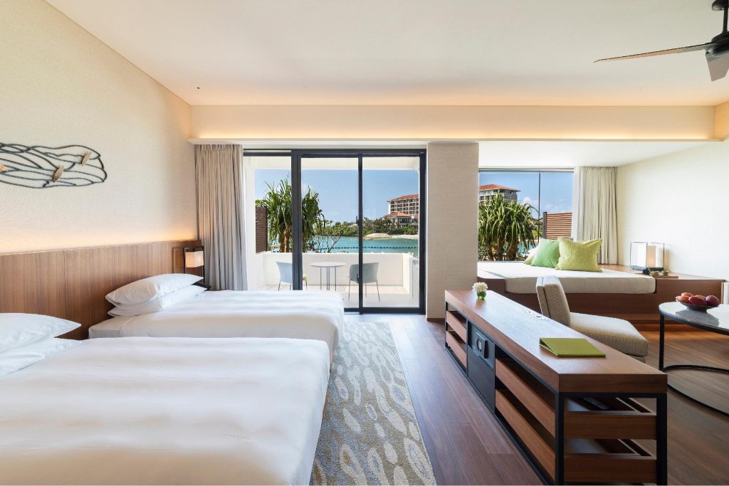 총 344개의 객실은 모두 모던하고 세련된 인테리어로 꾸며져 있습니다. 가족 여행객에게는 라군 뷰 트윈룸이 인기이며, 넓은 구조와 조용한 라군 전망 덕분에 편안하게 머물 수 있습니다. 장기 여행객에겐 주방 시설과 넓은 발코니가 갖춰진 오션 프론트 킹베드룸이 추천됩니다. 고급스러운 휴양을 원한다면 거실이 분리된 리젠시 스위트룸도 만족도가 높습니다.